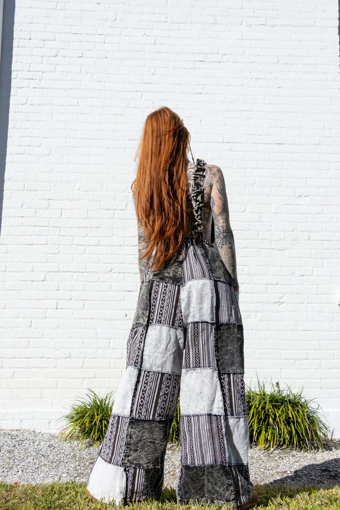 S/M and L/XL, featuring a palazzo wide leg design and adjustable straps