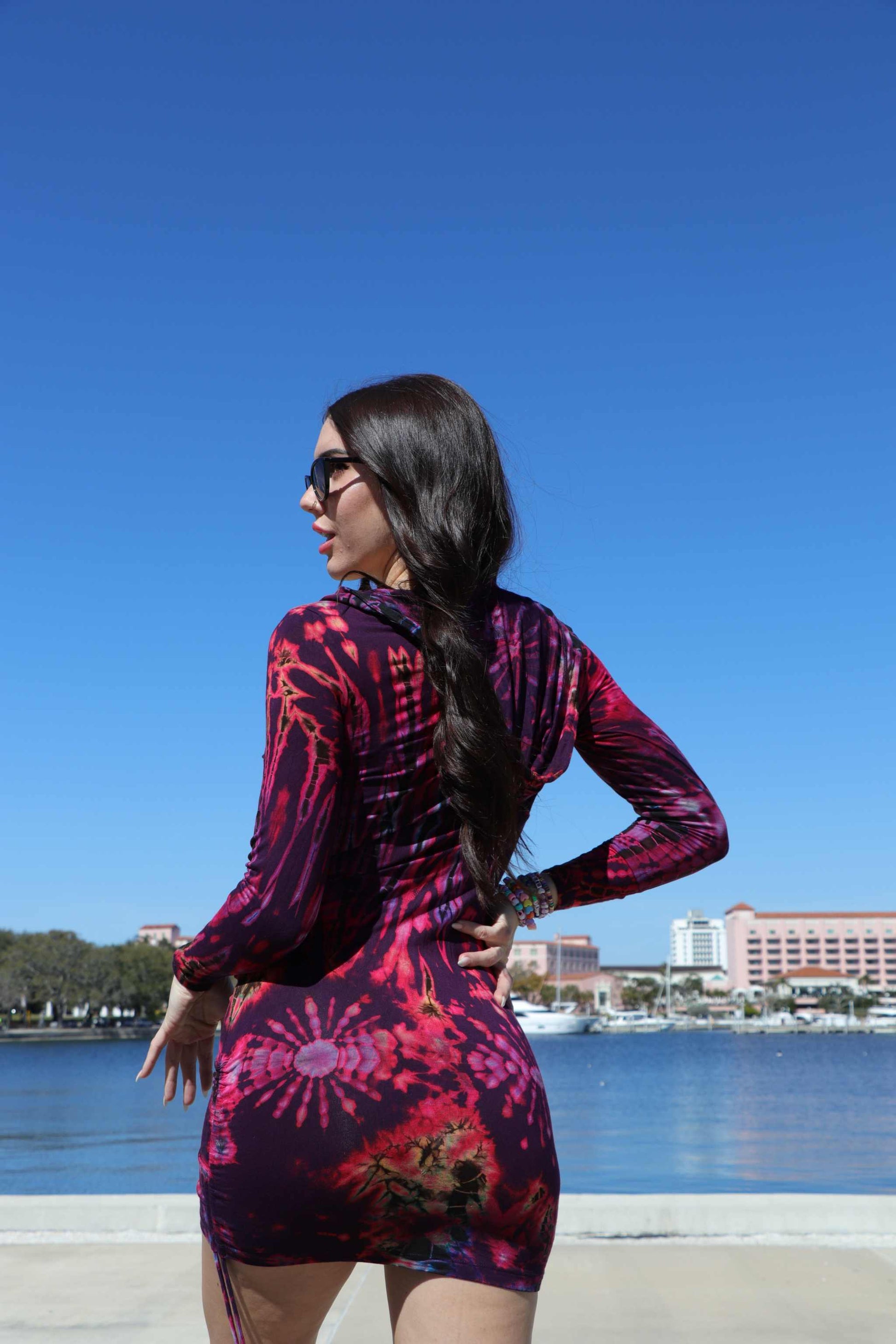 DISCONTINUED colors & design! Wear as a mini dress or as a jacket, either way this one of a find color + style is a great addition to any fun wardrobe. Featuring a fully unzippable front and drawstring sides to make it shorter or longer.